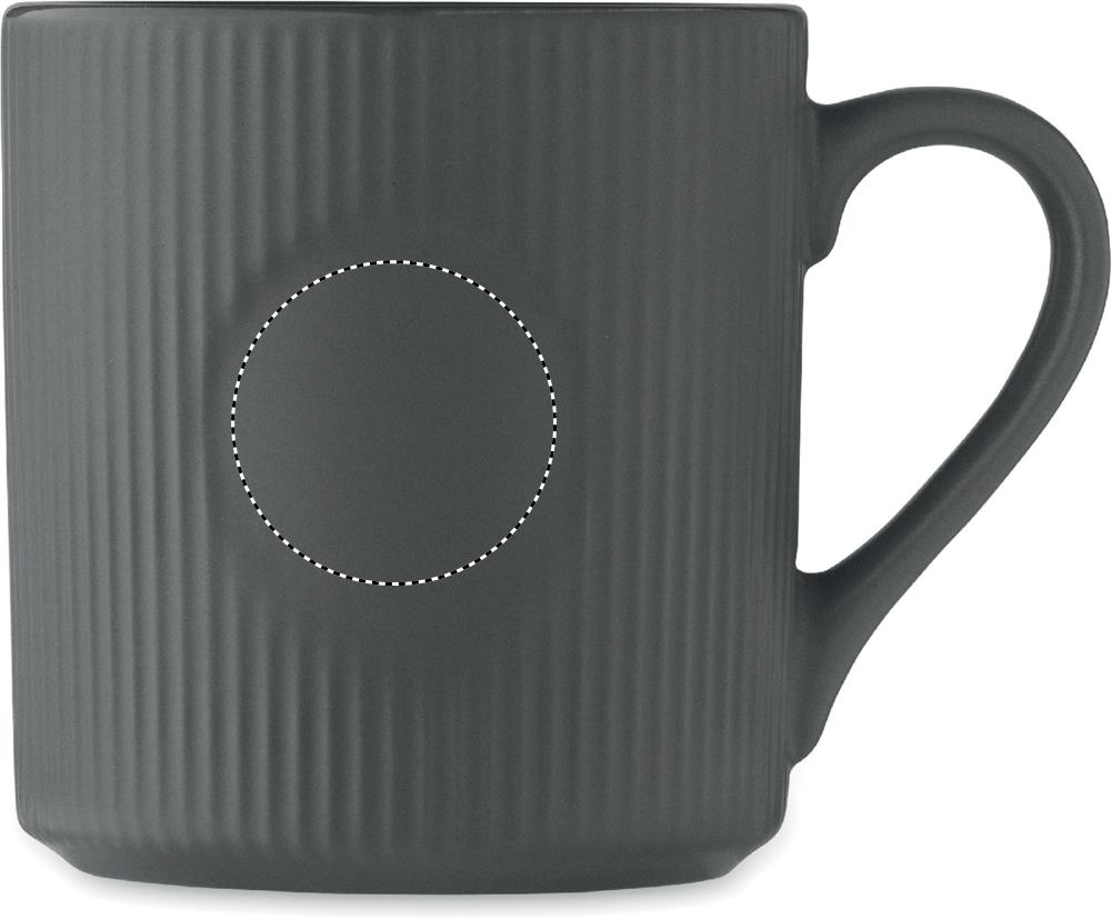 Pintakuvioitu keraaminen muki matta värillä. Tilavuus: 340 ml.