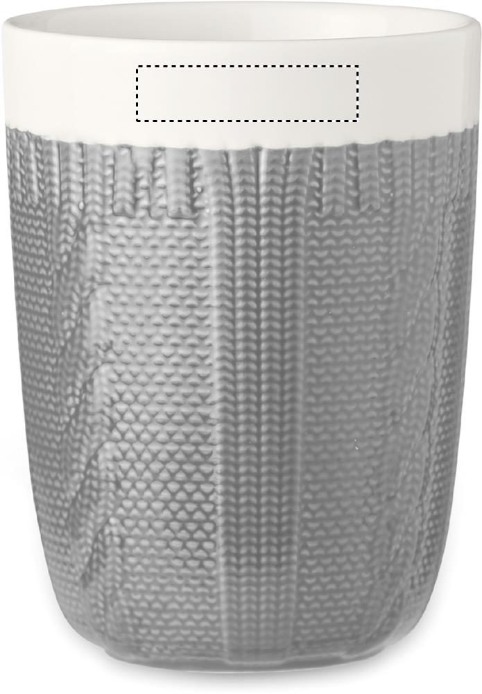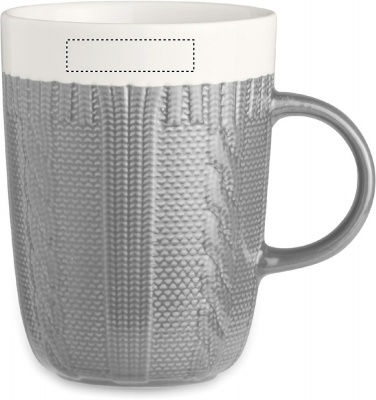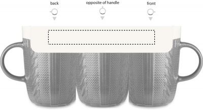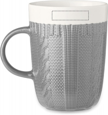 310 ml keraaminen muki, virkatun näköisellä designilla. Pakattuna yksittäin pahvilaatikkoon.