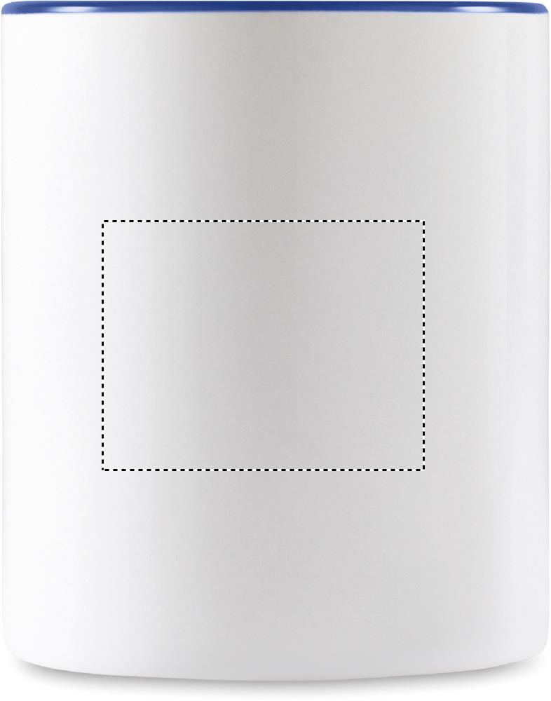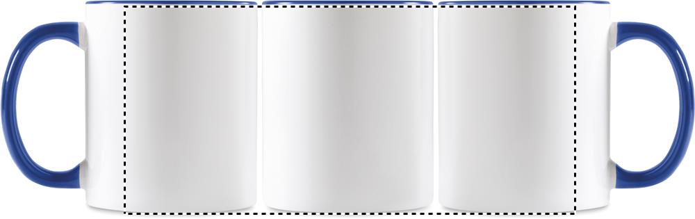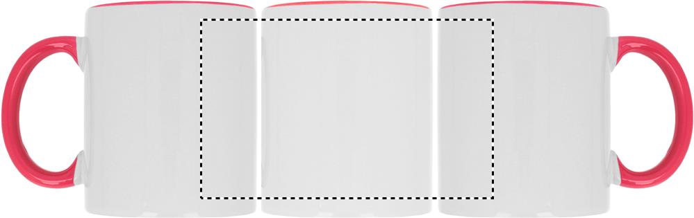 Keraaminen muki 300 ml erikoispinnoite sublimaatiota varten, värillisellä kahvalla ja sisäpuolella. Yksittäispakattuna valkoiseen pahvilaatikkoon.