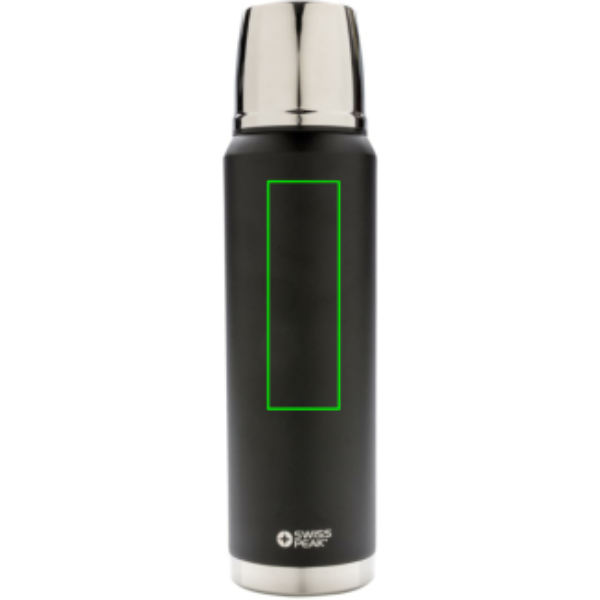 Swiss Peak Elite -sarjan tuotteet ovat tyhjiöeristettyjä, ja niissä on kaksoisseinä 18/8 asteen ruostumattomasta teräksestä. Jauhepinnoitettu musta väri on tehty kestämään! Ei haalistu eikä murru! Väliseinä on pinnoitettu kuparilla parasta mahdollista johtavuutta varten, jotta kuumat juomat pysyvät kuumina 8 tuntia ja kylmät juomat kylminä 24 tuntia. Käsinpesu ja vuotamaton. Sisältö 1000 ml.