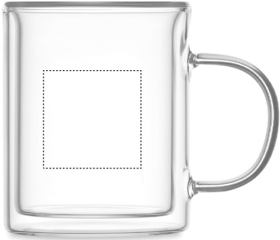 Kaksiseinäinen lasimuki, jonka tilavuus on 225 ml ja jossa on erikoispinnoite sublimaatiota varten.
