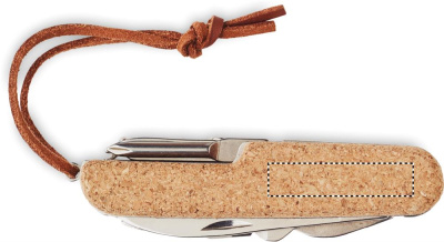 Ruostumattomasta teräksestä valmistettu monikäyttöinen taskuveitsi, jossa on korkkipäällyste ja PU-naru. Sisältää 2 avaajaa, veitsen, sakset, ruuvimeisselin Philips-kärjillä, viilan ja korkkiruuvin.