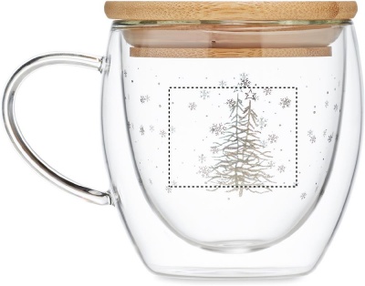 Kaksiseinäinen 220 ml borosilikaattimuki kuusikuvioinnilla ja bambukannella.