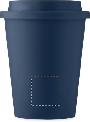 Kaksiseinäinen 300 ml muki PP kannella. Yksinkertainen tumbler-muki, joka pitää juomasi lämpimänä pitkään. Kannessa on juoma-aukko.