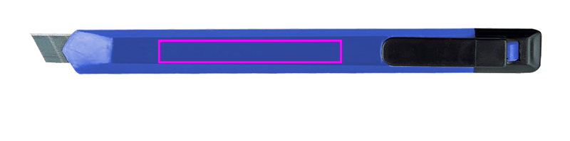 Tällä leikkurilla on samat toiminnot kuin tuotteella 9001, mutta se on pienempi ja voit rikkoa terän jopa 12 kertaa. Nämä leikkurit ovat todella kaikkien käytössä, olipa se sitten kotona tai töissä. Logosi tunnistetaan tuhat kertaa. Painatus leikkurin takana.