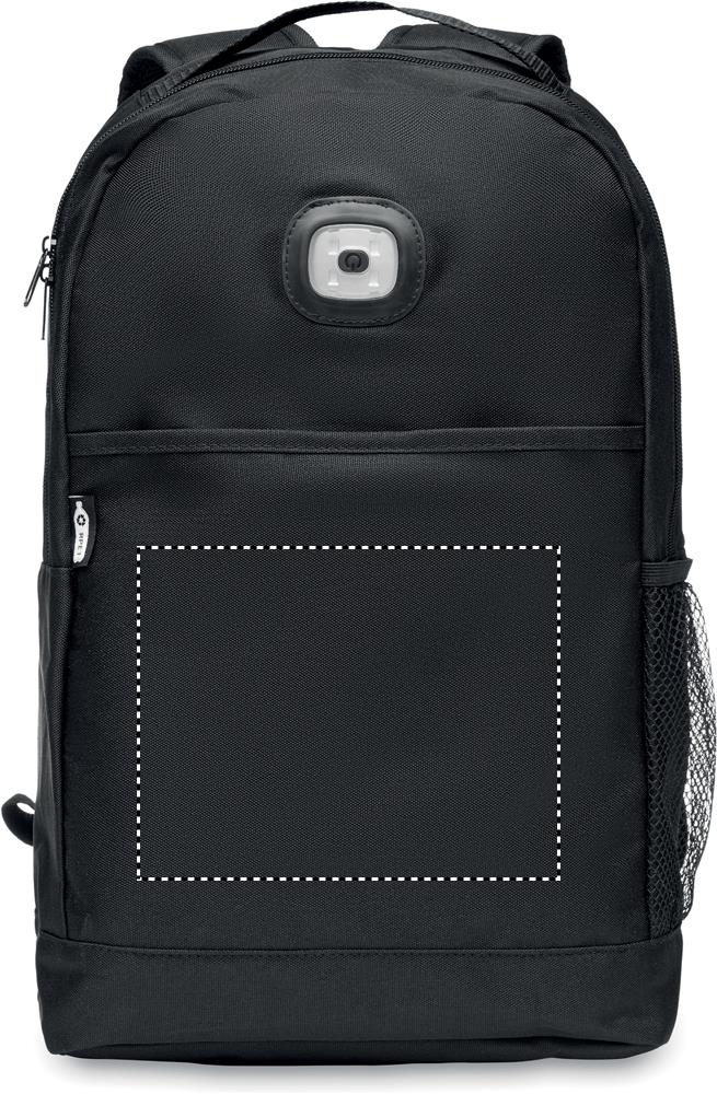 600D RPET reppu cob valolla, valossa 3 erilaista valonsäätöä. Nappiparisto sisältyy toimitukseen.
