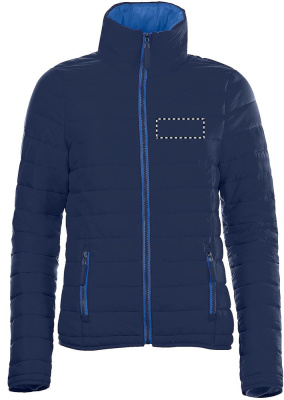 SOL'S RIDE naisten kevyesti pehmustettu takki. Kontrasti väri vuoressa ja vetoketjussa. Tuulta ja vettä hylkivät materiaalit. 2 vetoketjutaskua, väriltään yhteen sopivalla vuorauksella, korkea kaulus, helmassa ja hihoissa samaa sävyä. Kankaan yksityiskohdat: Päällyskangas 100% nailonia, vuori 100% nailonia, Pehmuste: 100% polyesteriä - 180g / m2. Myydään vain painettuna