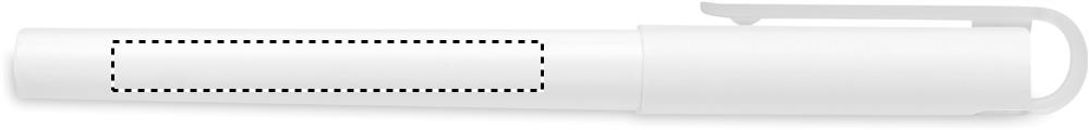 Geelimustekynä, jonka runko on valmistettu RPET materiaalista. Sininen muste.