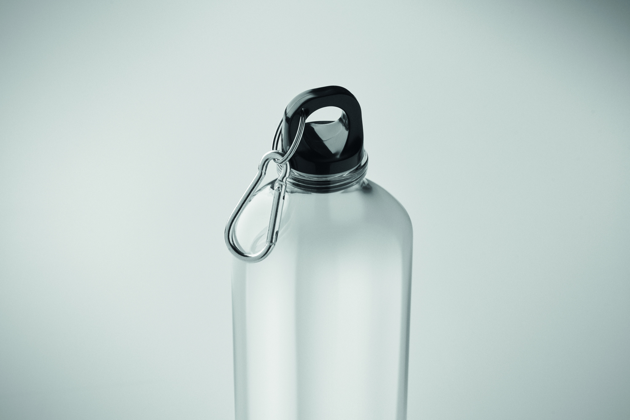 Juomapullo RPET-muovia, jossa karbiinihaka. Tilavuus: 750 ml.