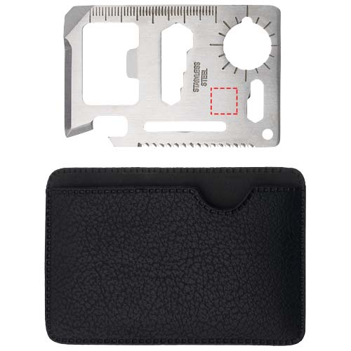 15 eri toimintoa monitoimikortissa nahkajäljitelmäpussissa.