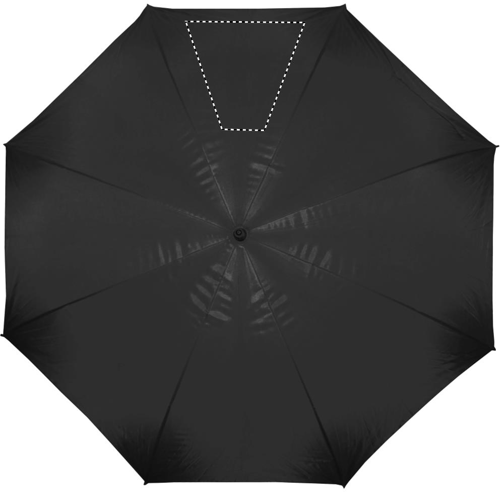 190T polyesterinen 27 tuuman automaattinen sateenvarjo, kromattu teräsakseli. Mustalla päällystetty metallivarsi ja ruoteet, muovikärki. Suora musta EVA-kahva, sisältää samanvärisen suojapussin.