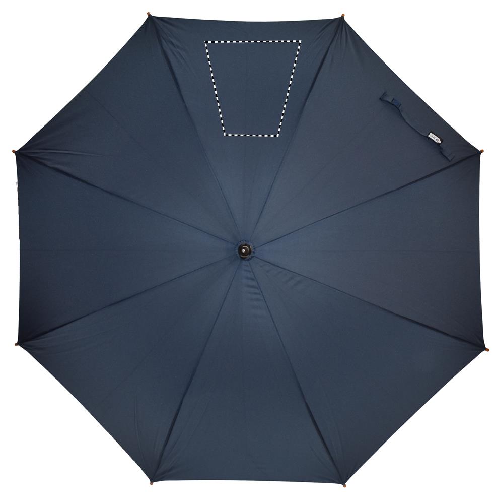190T RPET pongee 23 tuuman automaattinen sateenvarjo, puisella kahvalla-, kärjillä- ja päällä. Mustalla päällystetty metallinen ruode, manuaalinen suljin.