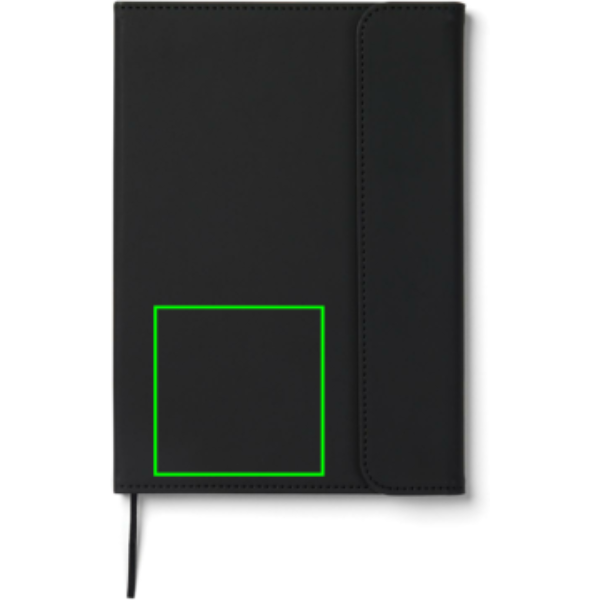 Tyylikäs ja puhdaslinjainen A5-muistikirja. Sen kansi on valmistettu 30 % kierrätetystä mattapintaisesta PU:sta, ja siinä on magneettisuljenta ja integroitu kynäpidike. Sisällä 80 sivua/160 arkkia 70 g/m² viivoitettua kierrätyspaperia, joka sopii kaikkiin muistiinpanoihisi. Paperinen sisäosa voidaan vaihtaa, mikä mahdollistaa pitkäaikaisen käytön. GRS (Global Recycled Standard) -sertifiointi takaa, että kierrätysmateriaalien koko toimitusketju on sertifioitu. Kierrätysmateriaalin kokonaismäärä perustuu tuotteen kokonaispainoon. 54 % tästä tuotteesta on GRS-sertifioitua kierrätyspaperia ja 5 % GRS-sertifioitua kierrätyshuopaa.