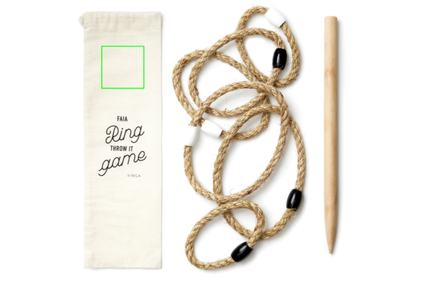 Tämä ulkopeli toimii hyvin sekä rannalla että puistossa, ja se toimitetaan puuvillapussissa, joka on helppo kuljettaa mukana. Pelin idea on yksinkertainen, eli renkaanmuotoisten köysien heittäminen kepin maassa olevan päälle. Eri kokoiset renkaat antavat eri määrän pisteitä. Sisältää käyttöoppaan, mäntytikun ja juuttirenkaat.