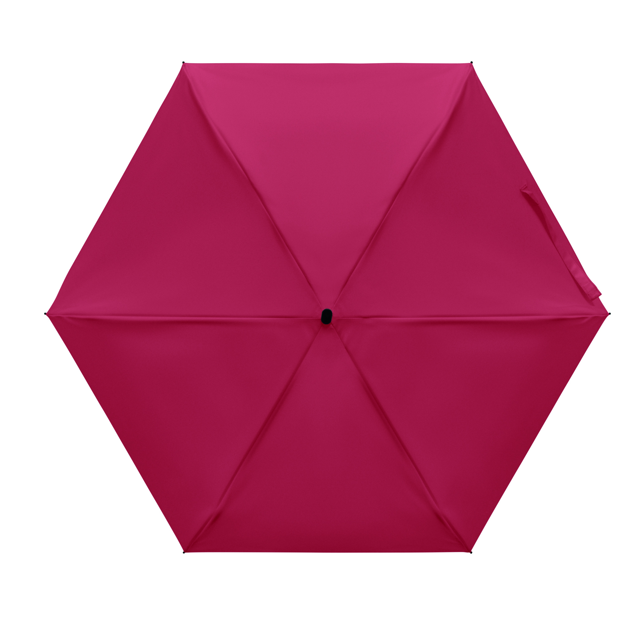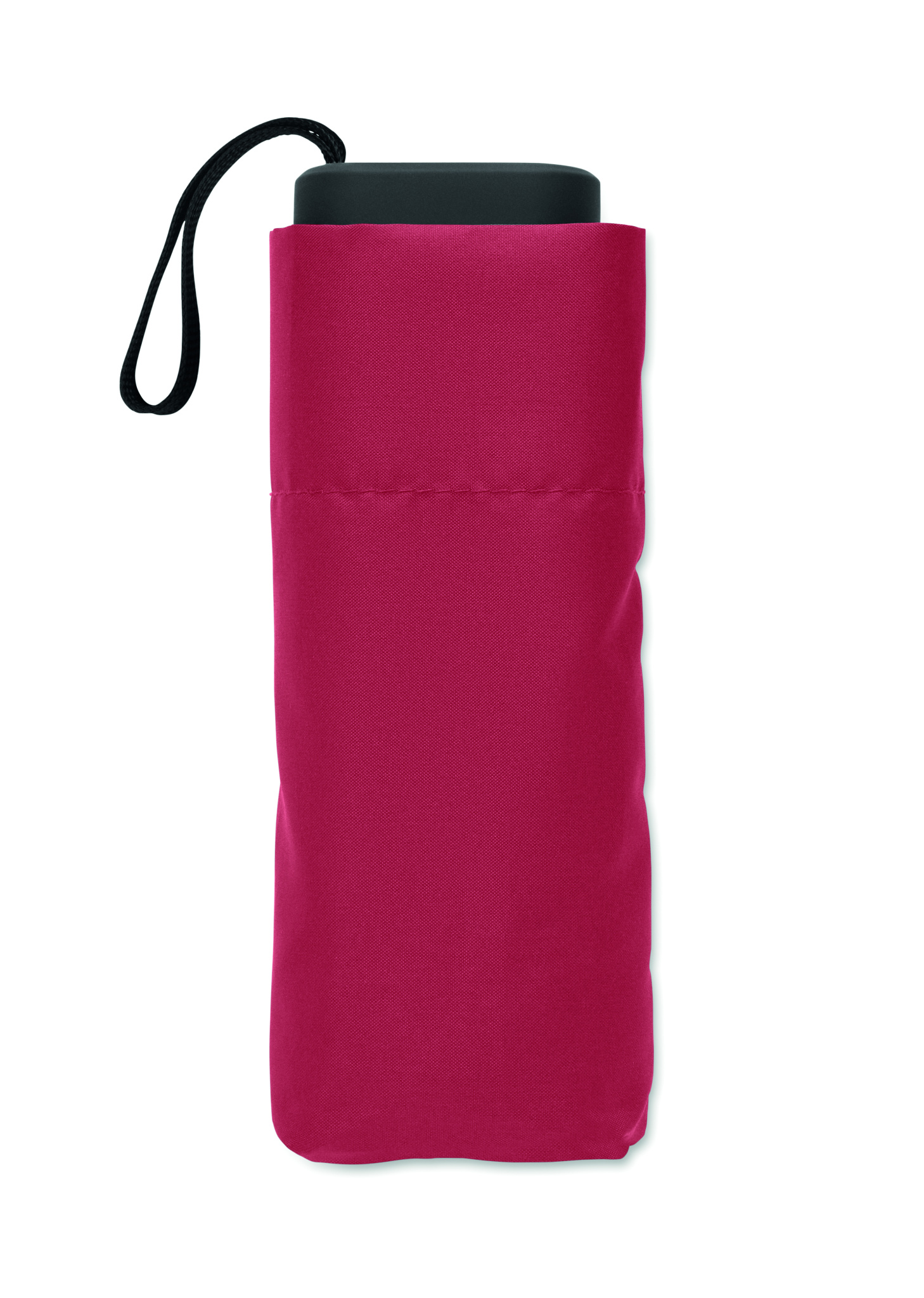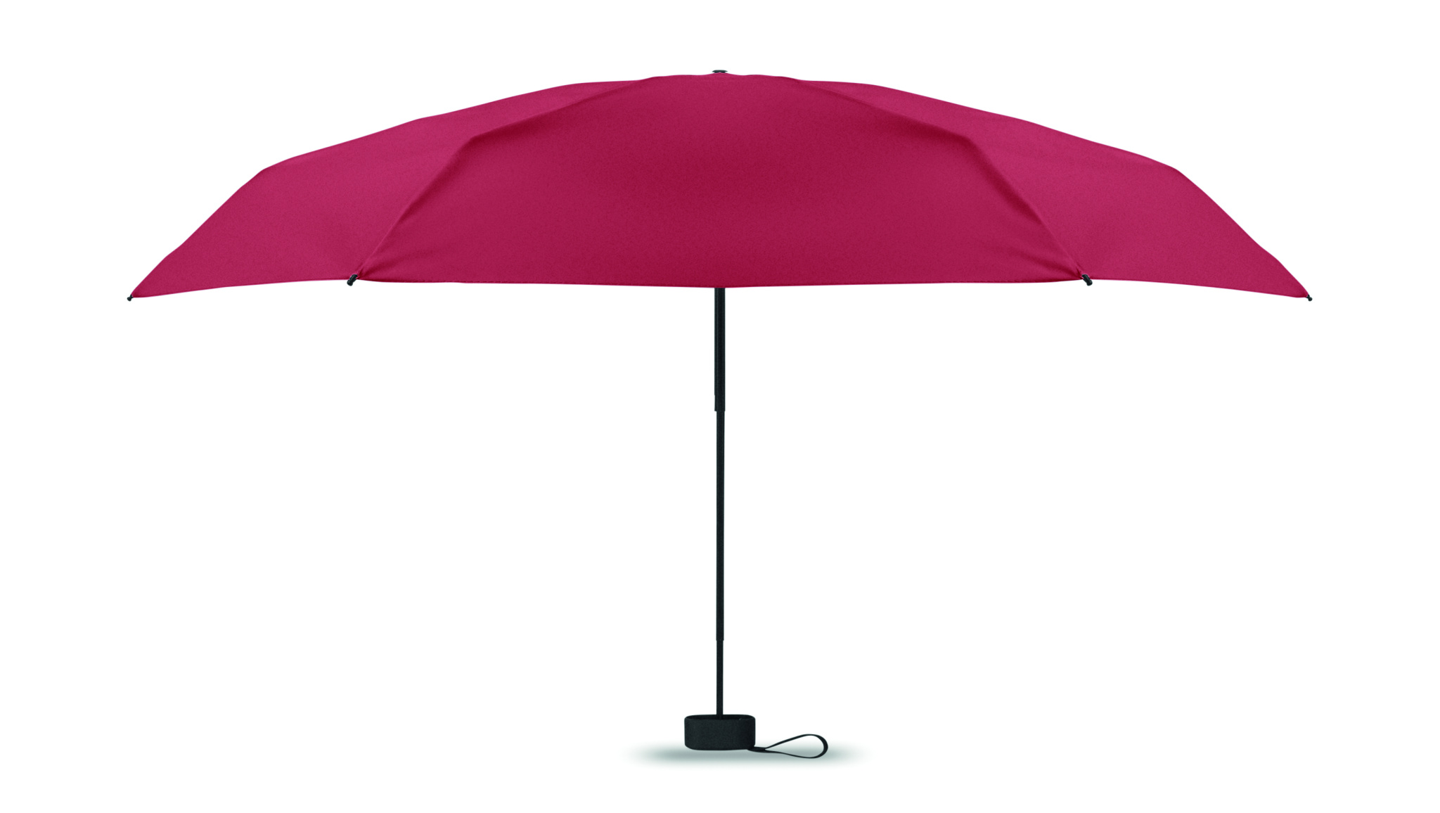19 colių ilgio, 5 dalių rankinis skėtis, pagamintas iš 190T pongee audinio, su atitinkamu maišeliu. Jis turi metalinį ir stiklo pluošto vėjui atsparų rėmą, juodą gumuotą rankeną su riešo dirželiu, o sulankstytas ilgis – 17 cm.