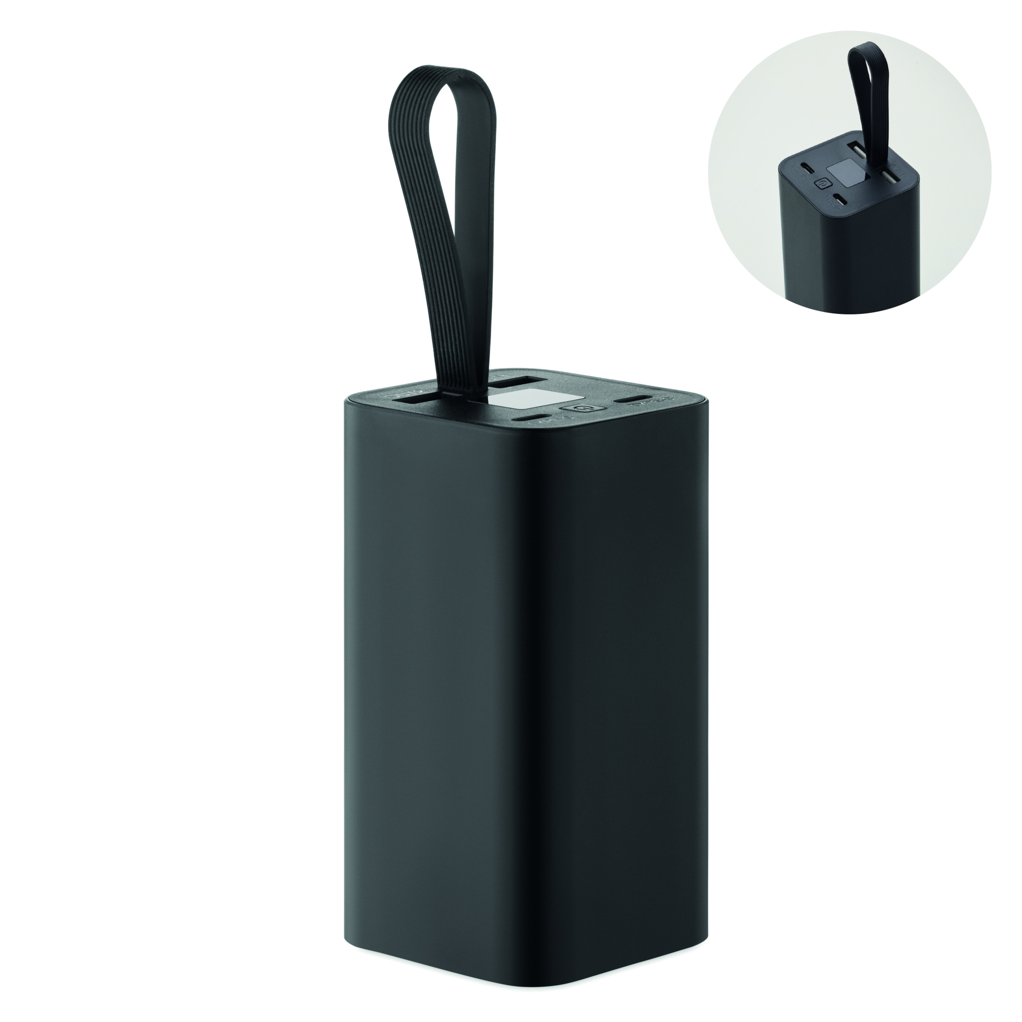 20 000 mAh talpos išorinė baterija, pagaminta iš perdirbto aliuminio, su skaitmeniniu įkrovos ekranu ir silikoniniu laikikliu. Turi du C tipo ir du USB-A išėjimus su PD 65W greituoju įkrovimu.