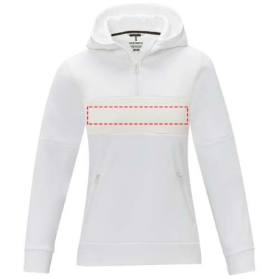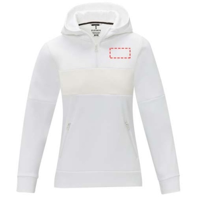 Sayan moteriškas megztinis su anorakiniu gobtuvu su pusiau užtrauktuku – unikalus našumo ir stiliaus derinys. Anorako dizainas sklandžiai sujungia madą ir funkciją, turi ketvirtį užtrauktuką, kad būtų galima sluoksniuoti įvairiapusiškai. Pagaminta iš 350 g/m² poliesterio ir Sorona® mezginio mišinio. „Sorona®“ pluoštas padidina švarko ekologiškumą, nes jame yra tvarus elementas, nepakenkiant našumui. Kontrastinis priekinio skydelio audinys, pagamintas iš 280T ripstop nailono, papildo dizainą savo patvarumu ir tekstūra ir yra ideali vieta jūsų prekės ženklui pristatyti. Nesvarbu, ar leidžiatės į nuotykius lauke, ar tiesiog naršote kasdienėje rutinoje, Sayan megztinis su gobtuvu be vargo derina madą su funkcionalumu. Šis megztinis sukurtas prigludusios formos, kad atrodytų moteriškas.