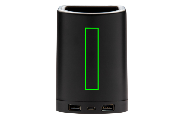 Uzlādējiet savas mobilās ierīces, nepievienojot kabeli, izmantojot šo unikālo "divi vienā" galda piederumu. Vienkārši novietojiet mobilo tālruni uz statīva un gaidiet, līdz parādīsies uzlādes paziņojums. Lādētājs arī ļauj uzglabāt kancelejas piederumus, piemēram, pildspalvas vai zīmuļus. Šis lādētājs sniedz iespēju izstrādājumu izrotāt ar savu logotipu, pēc pievienošanas tas iedegsies optimālai ekspozīcijai. Savietojams ar visām QI iespējotām ierīcēm, piemēram, Android jaunākās paaudzes, iPhone 8 un jaunākām versijām. Ieeja: 5V/3A. Bezvadu izeja: 5V/1A 5W. Iekļauts 150 cm mikro usb kabelis.