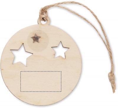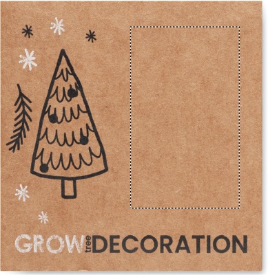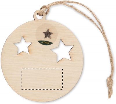 Koka nieciņu formas dekorācijas pakaramais ar džutas auklu, ieskaitot egļu sēklas. Prezentēts kraftaploksnē. Ražots ES.