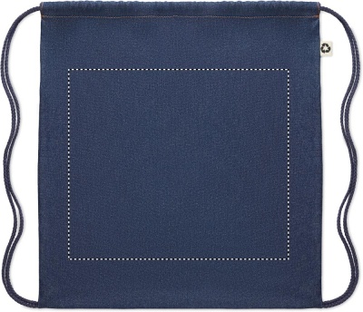 50% pārstrādāta kokvilnas krāsas džinsa audums un 50% kokvilnas aukliņu maisiņš. 250 gr/m².