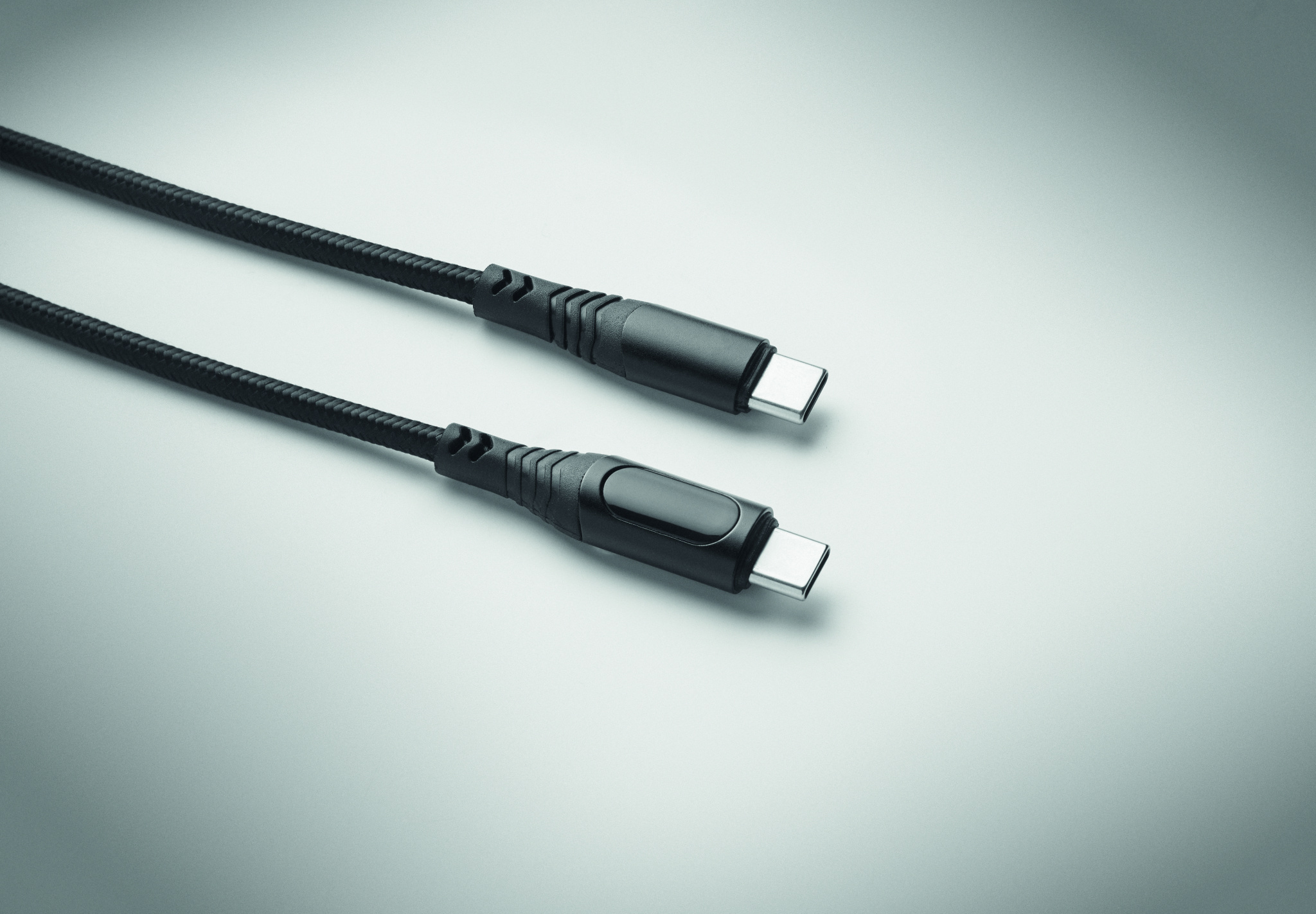 Up to 100W charging and data cable type-C to type-C with LED screen with charging power display feature. Length 1M.