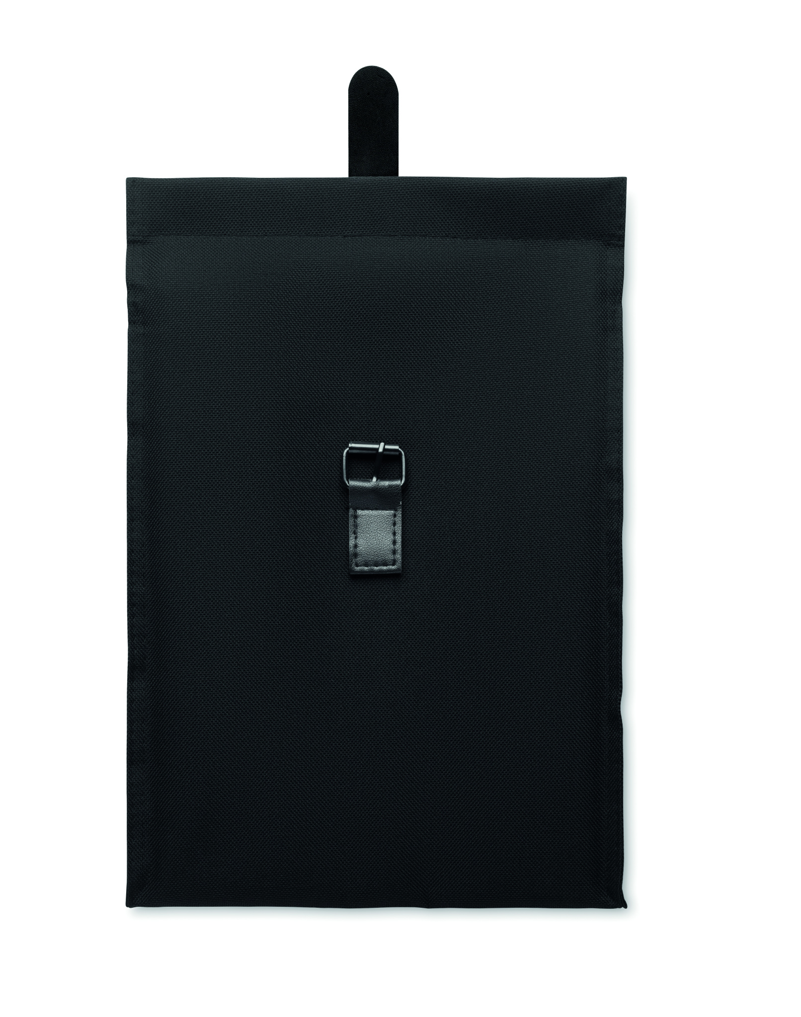 600D RPET polyester insulated roll top lunch cooler bag with PU handle and closure. Insulation: 3mm PE foam with PEVA.