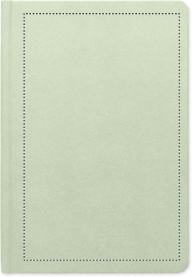 A5 notebook with hard cover and 160 lined paper pages (80 sheets) in PLA sugarcane (65% Sugarcane fibre/35% paper). Casebound.