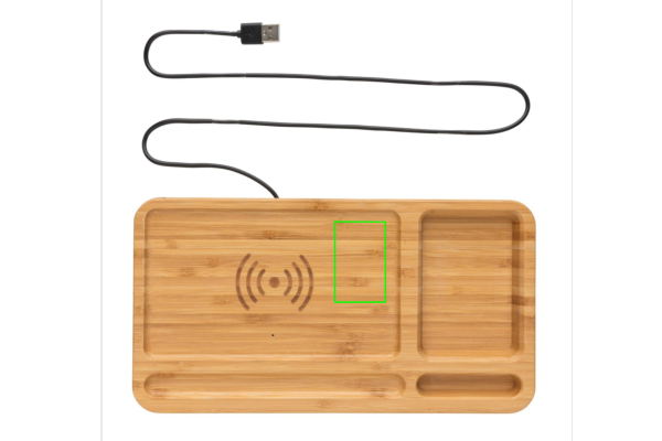 Идеальный предмет для вашего стола! Этот бамбуковый органайзер для стола позволяет вам поддерживать порядок на столе и заряжать телефон без проводов. В комплект входит кабель micro USB длиной 150 см для подключения зарядного устройства к источнику питания. Беспроводная зарядка мощностью 5 Вт. Вход постоянного тока 5 В/1,5 А. Выход: 5 В/800 мА.