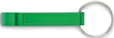 Открывалка для бутылок и брелок для ключей из переработанного алюминия с блестящей отделкой.