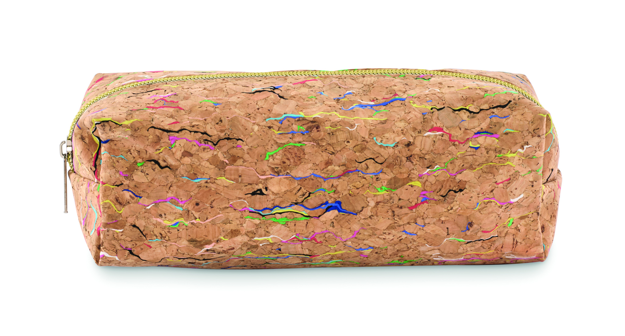 Coloured cork pencil case.