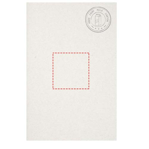 Записная книжка формата А5 с 30 линованными листами плотностью 80 г/м² из переработанных коробок из-под молока (до 70%). Картонные коробки из-под молока собираются, сортируются, перерабатываются и превращаются в бумагу, таким образом действительно превращая мусор во что-то полезное.