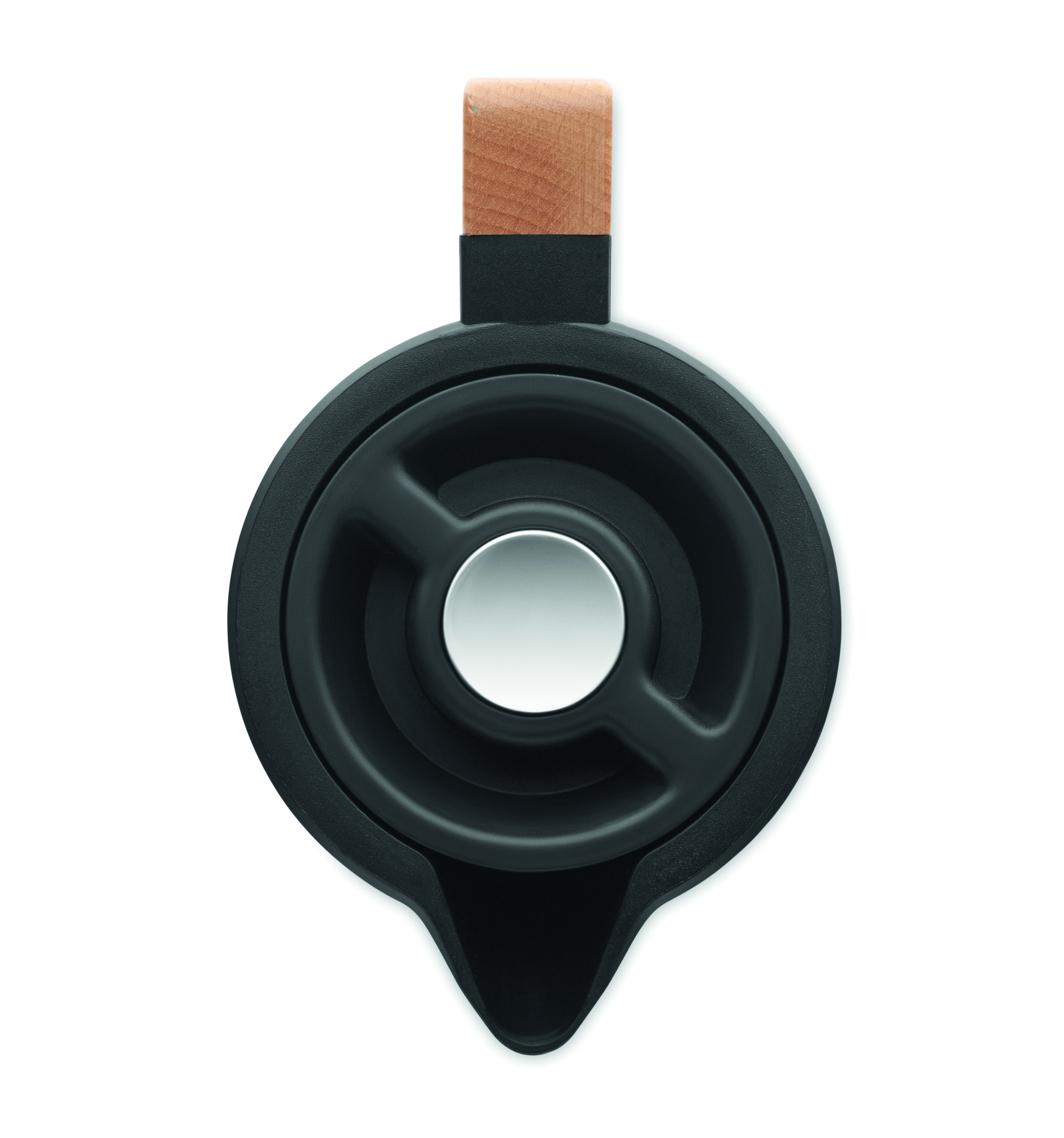 Double wall insulated vacuum jug recycled stainless steel (90% recycled stainless steel and 10% stainless steel) inside and PP outside wall with wooden handle. Capacity: 1L.