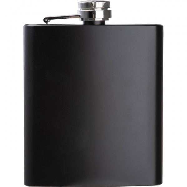 Элегантная фляжка из нержавеющей стали с матово-черным дизайном и емкостью 207 мл. Идеально подходит для использования на ходу или в качестве стильного подарка.
