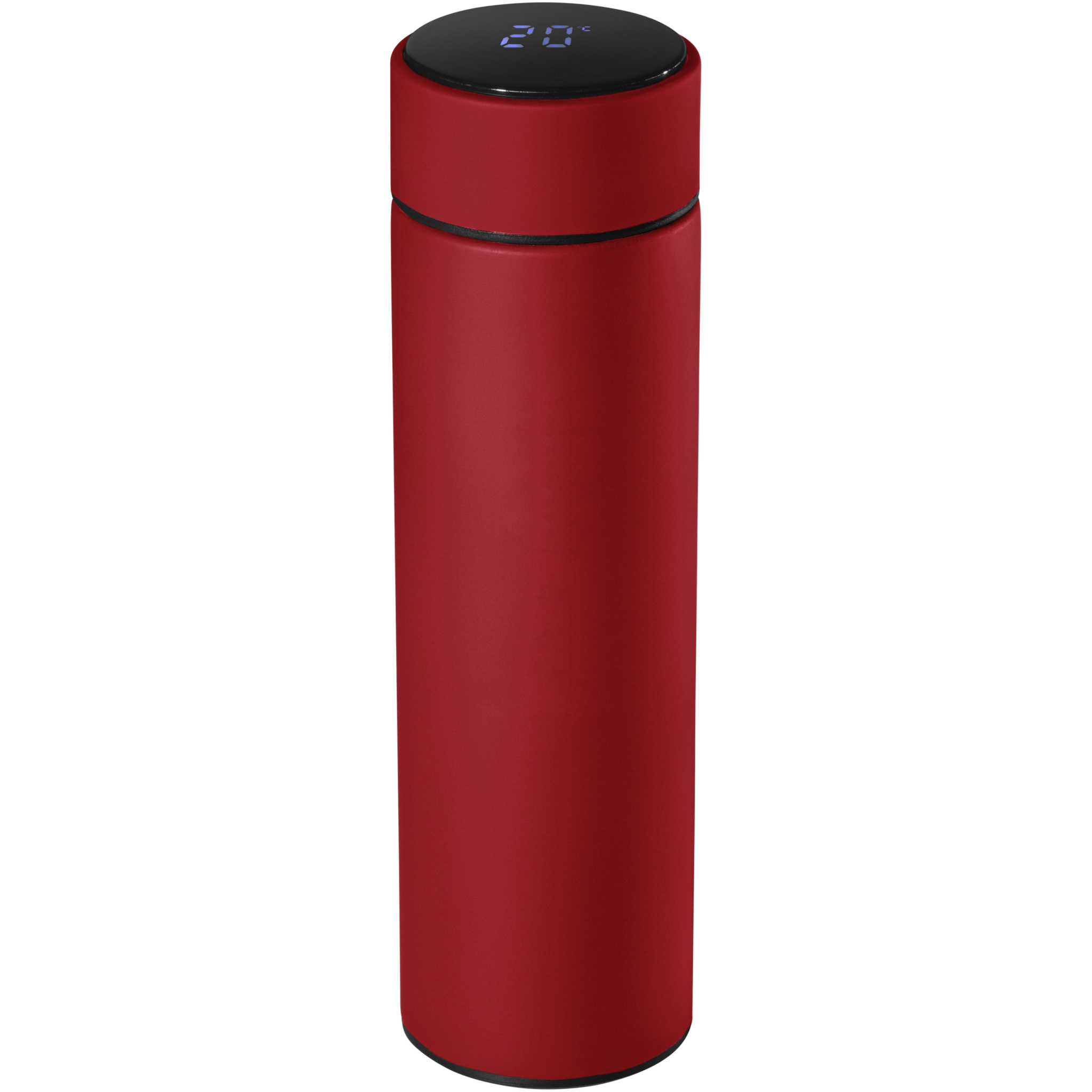 Герметично закрывающаяся бутылка из нержавеющей стали 500 мл с двойными стенками. Бутылка оснащена датчиком температуры. Благодаря системе «Touch & Light» температура напитка отображается на крышке бутылки (в градусах Цельсия). Подходит как для горячих, так и для холодных напитков. Поставляется в цилиндрической подарочной коробке из бумаги вторичной переработки. Размер: Ø 47 x 225 мм. Несъемный аккумулятор в комплекте: CR 2450 (3 В). Температура может отображаться 20 000 раз.