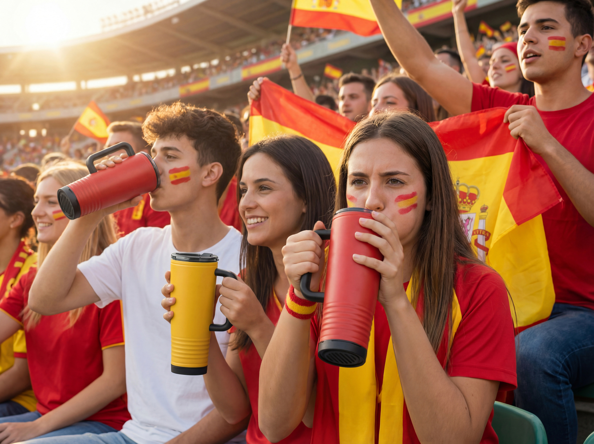 Double wall cheering tumbler in stainless steel outside and PP inside. PS lid with built-in noise-making horn feature. Capacity 700 ml.