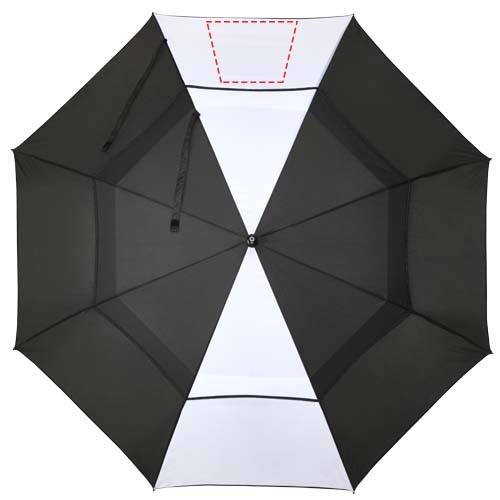 Зонт для гольфа Jeff с защитой от ветра оснащен просторным 55-дюймовым куполом из полиэстера, который надежно защищает нескольких человек от непогоды. Прочный стекловолоконный стержень и рама обеспечивают превосходную гибкость, гарантируя надежную устойчивость к сильному ветру. Практичная пластиковая ручка с кнопкой автоматического открывания обеспечивает быстроту и удобство эксплуатации. Контрастные панели купола являются прекрасной площадкой для смелого, привлекающего внимание брендинга — идеально подходит для мероприятий, рекламных акций или повседневного использования.