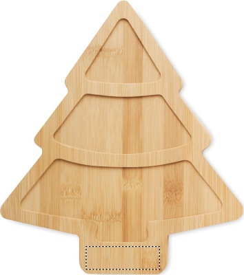 Бамбуковая сервировочная доска в форме дерева с тремя керамическими тарелками в комплекте.