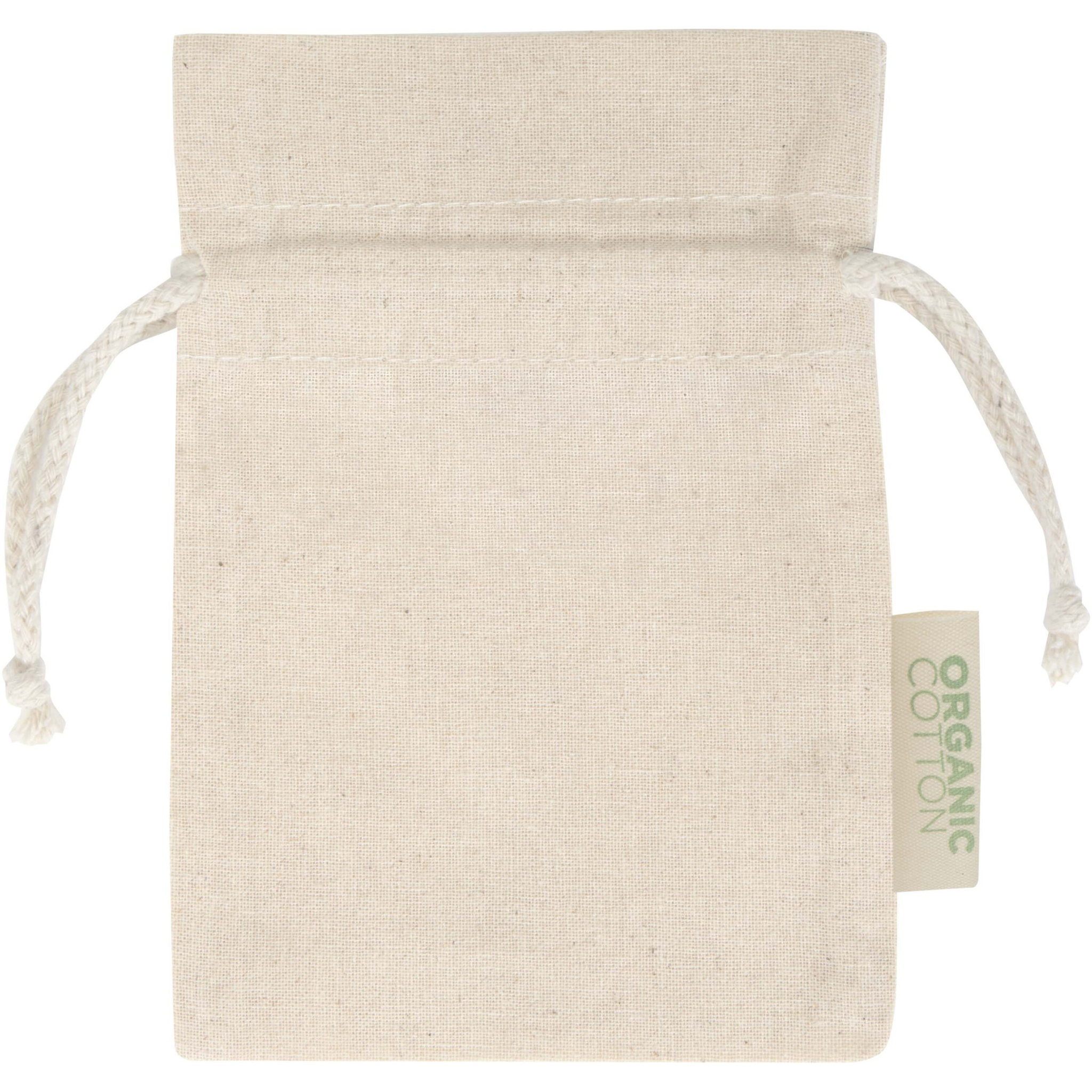 Подарочный пакет из 100% органического хлопка плотностью 140 г/м², сертифицированного OCS, с застежкой на хлопковый шнурок. Идеально подходит для подарков или хранения предметов. Размер: 15 x 10 см.