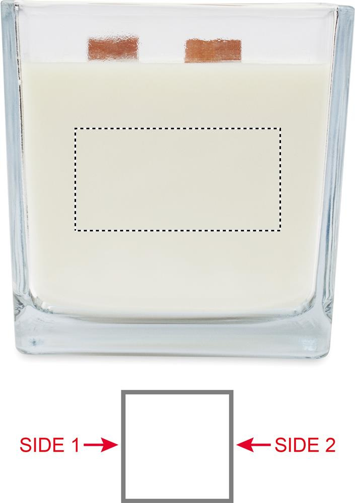 Extra large vanilla fragranced plant based wax candle 1300gr in glass with 2 wooden wicks and beehive design on top. Burning time 70 hours