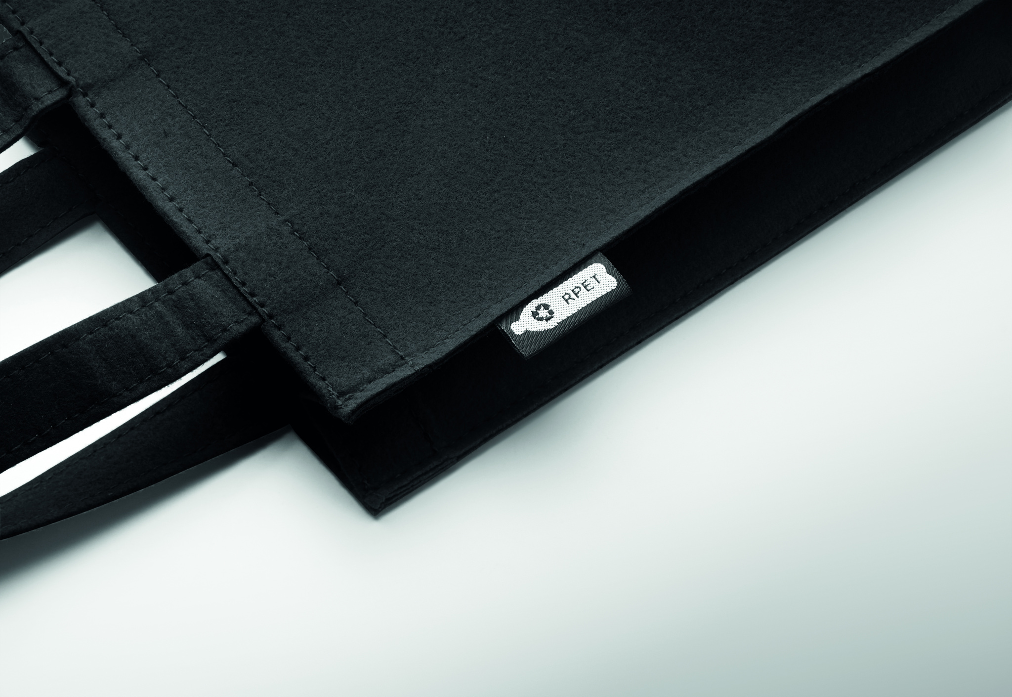 Small RPET felt gift or goodie bag with short handles and bottom gussets. Felt thickness: 1 mm.