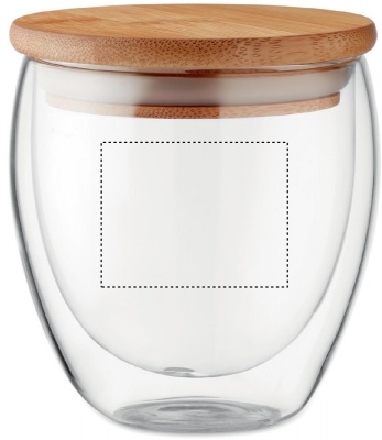 Стакан двустенчатый из боросиликатного стекла с бамбуковой крышкой и силиконовой прокладкой. Емкость 250 мл.