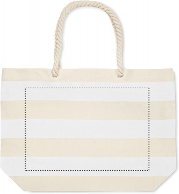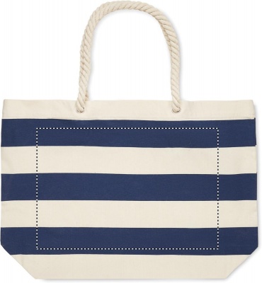 Полосатая пляжная сумка или сумка для покупок из хлопка с ручкой. 220 гр/м².