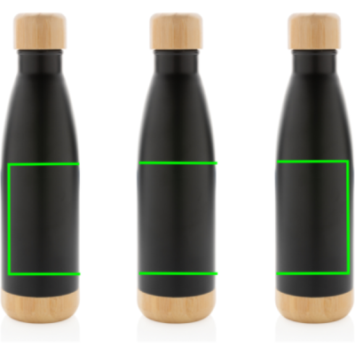 Вакуумная бутылка из нержавеющей стали с бамбуковой крышкой и дном, черный