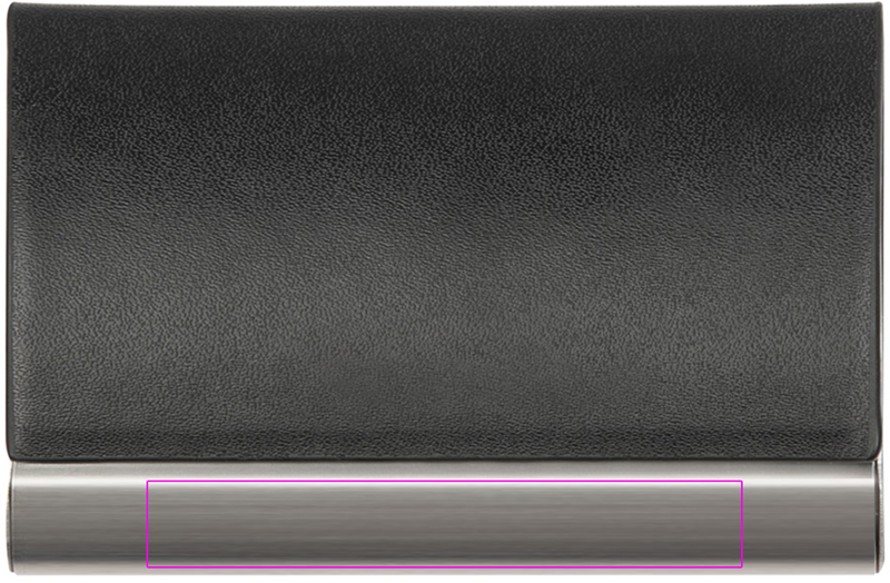 Визитница из металла с чехлом из кожзаменителя и магнитной застежкой. Логотип нанесен лазером на металлическую полоску.
