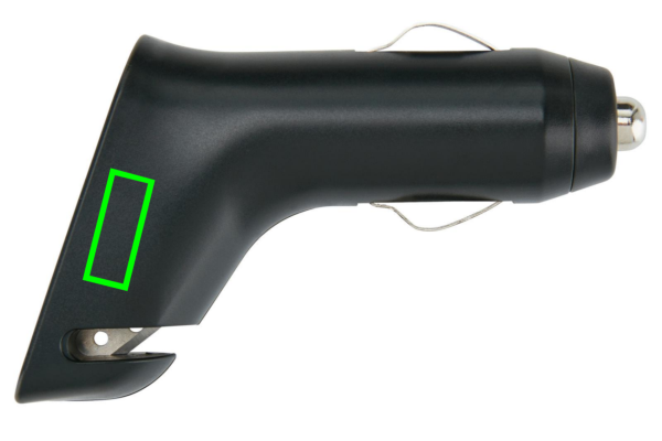USB-billaddare med dubbla uttag som kan användas till att ladda två mobila enheter samtidigt. Laddaren är även utrustad med en bältesskärare och en nödhammare så att du alltid har dem inom räckhåll vid nödfall. Output: 5 V/2,1A.