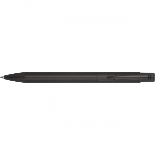 Kulspetspenna i fullfärg tillverkad av återvunnen aluminium med stor refillkapacitet och blå skrift. Din logotyp appliceras med lasergravyr under klämman.