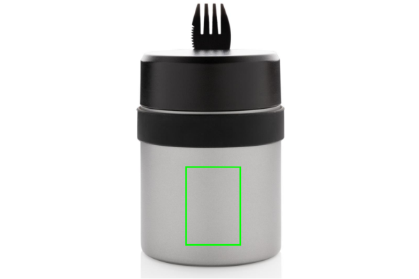 Känn inte smaken av stainless steel utan endast av maten eller soppan! En keramisk all over-coating har applicerats på insidan för att eliminera eventuell metallsmak. Håll innehållet varmt i upp till 5tim och kallt i upp till 15tim med denna vakuumisolerade mattermos. En allt-i-ett gaffel, kniv, sked medföljer. Läckagesäkert lock. Volym: 400ml. Registrerad design®