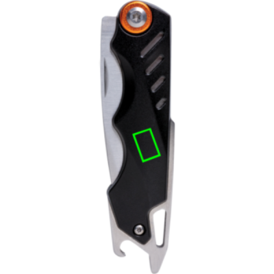 Ultrastark kniv med 4 funktioner. Med aluminiumhölje och verktyg i stainless steel. Inkluderade verktyg: hopvikbar klinga, liner lock-låsfunktion, bältesklämma, flasköppnare.