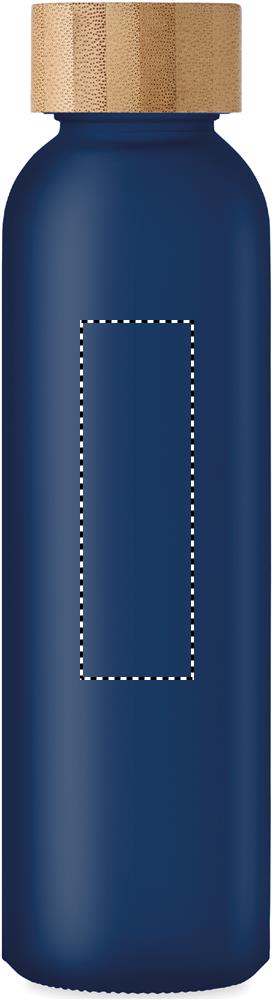 Glasflaska med matt yta och lock av bambu. Läcker inte. Volym: 500 ml.