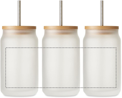 Cocktailglas med specialbeläggning för sublimering med bambulock. Inklusive ett sugrör i rostfritt stål. Kapacitet: 400 ml.